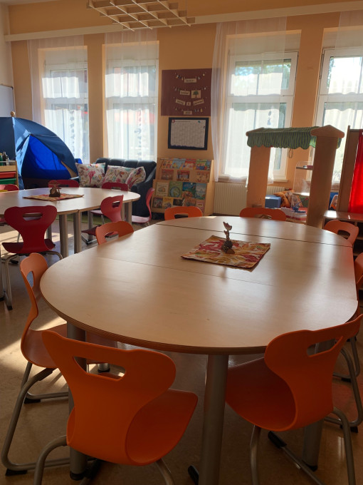 Die meiste Zeit am Nachmittag verbringen wir in unserem riesigen Volksschulgarten, im Turnsaal und natürlich in unserem gemütlichen Gruppenraum.